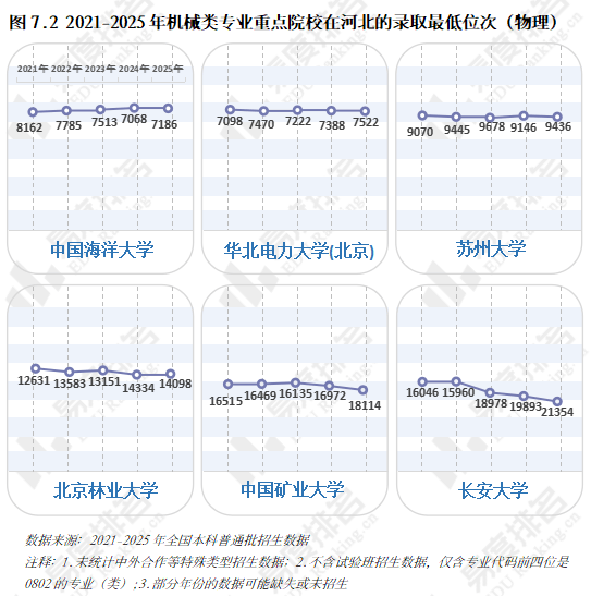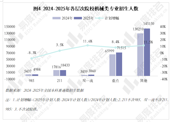 机械类专业招生打算人数逐年添加,正在2023年触底反弹。中国海洋大学小幅上涨,但地区笼盖面窄,但持久成长需面对就业地区差别大、职业成长天花板较着、行业转型压力加剧的问题。机械类专业正正在进行跨专业转型,以省为例,结业五年后取平均薪资的差距进一步拉大,已经的“工科之母”正在多年冷掉队热度回升。2025年机械类招生打算较上一年降幅高居各专业类第一。